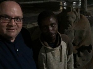 Eventually, he had said all it seemed he needed to for the night, and he thanked me for stopping and talking with him. I got off the wall and knelt next to him in the sand, and we prayed together for a long time, asking God to heal all those hurts and provide peace and answers for all those questions, to provide for him in the daily needs but also in the longer ones, and to keep him and his siblings safe and healthy, and as many other things as I’d perceived or he’d asked me to. He’d told me how he has a shelter he can go to when he has R60 (60 rand, about $5-$6), so I gave him enough cash for three nights, and then I realized I could offer him some more lasting help. I explained what counseling is and how they are very good at listening and helping you talk, even sharing that I had been through counseling as part of our missionary preparation and our recent relocation and had found it difficult sometimes but very worthwhile. Because he was interested, I used my phone to look up “free Christian counseling in Durban,” finding two good referrals but then realizing that for the first time during the trip I had no pen. Sandile produced a plastic spoon and began expertly carving the names and addresses onto two of his sculptures, hoping they would last long enough for him to copy it down the next morning. As we embraced and prepared to part, he kept thanking me for our talk and for how it had made him feel better, and I just kept trying to speak as much of God’s love into him as I could in those parting moments. He said he hopes he will see me again there someday, and I replied that I was very torn about that, because I would like very much to see him again but that I also pray he will have a better situation by the next time I’m in Durban.