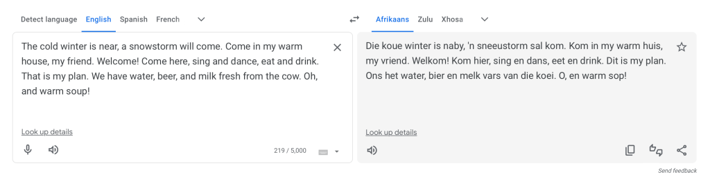 Afrikaans is also recognized as among the easiest languages for English-speakers to learn, owing to them being related through Afrikaans’ roots in Dutch and English’s roots in German. Pronunciation is different, but many words are cognates, and others look or sound close enough to be quickly learned or even guessed, such as gras for grass, dogter for daughter, and hallo for hello. That all contributes to my studies (remote and alone) being more likely to succeed and to be achieved faster.